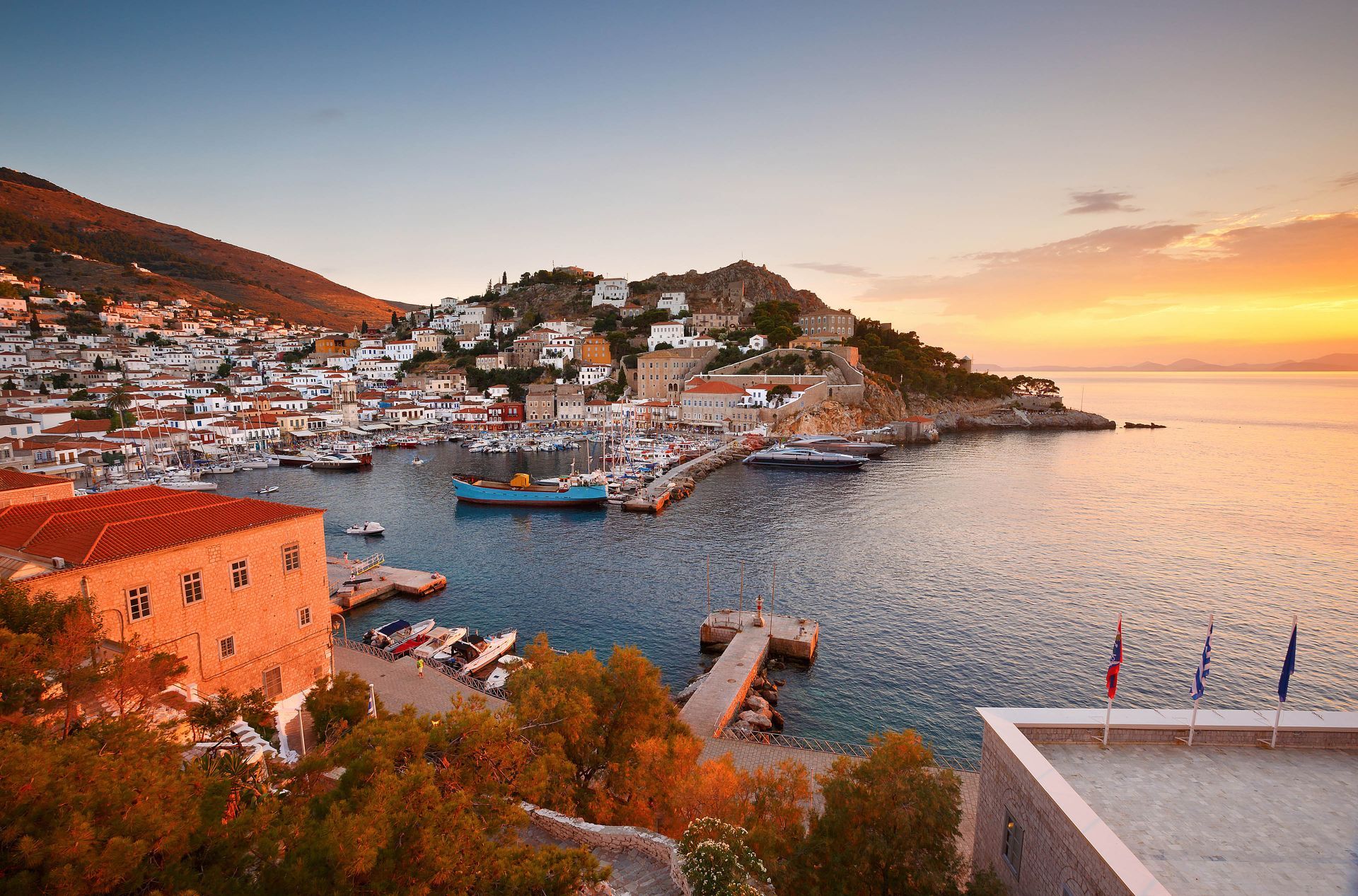 After breakfast, transfer from Athens to Piraeus port and embark on a cruise ship.One day cruise to three islands: Aegina, Poros, Hydra including local lunch. Departure tentatively at08:15 hours from port Piraeus. At 0930 hours arrival to Aegina. It is possible to make an excursion to 5th century BC Classical Greek Temple of Afaea, rising above the sea. Other excursion options include a guided tour of the island and visit to the Greek Orthodox Church of Saint Nektarios. Next port of call is the little island of Poros. Walk along winding streets, among rich pine forest and lemon trees to the top of a panoramic tower clock view of the Peloponnese. Finally, arrival to Hydra Island. Enjoy one of the most cosmopolitan of Greek islands. The favourite of the international jet-set and an artist retreat, it is ideal for shopping, swimming and photographs. On the way back to the port of Piraeus, passengers are invited to the main lounge to enjoy live orchestra and local Greek folk dances. Return approximately at 1930 hours. Overnight at your hotel in Athens.