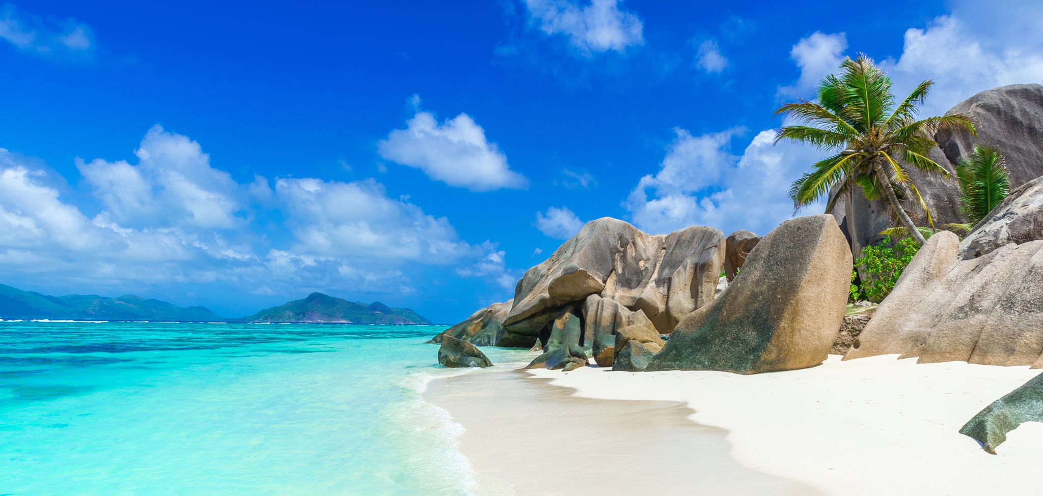 Beach with Granite Rocks La Digue Island